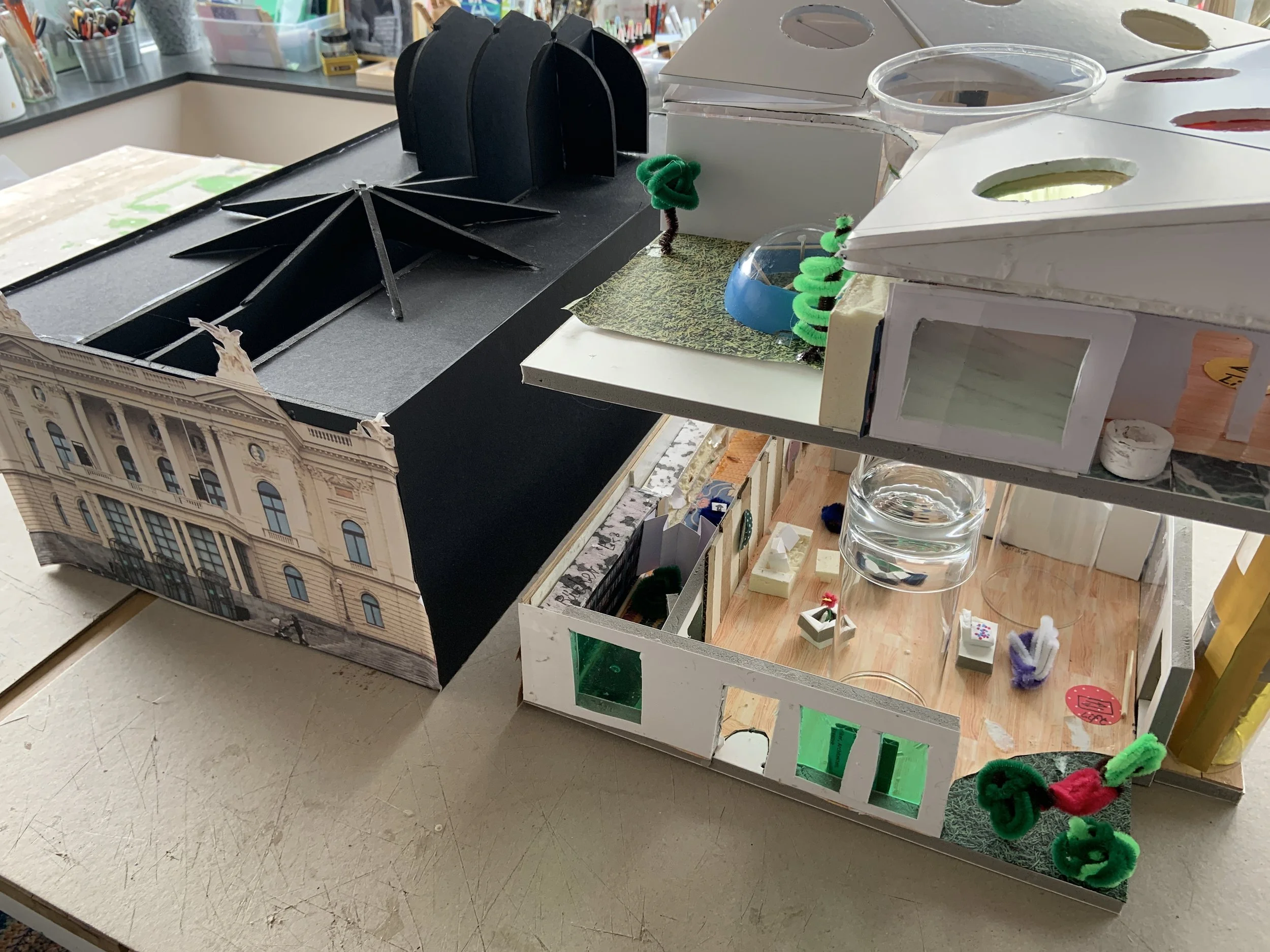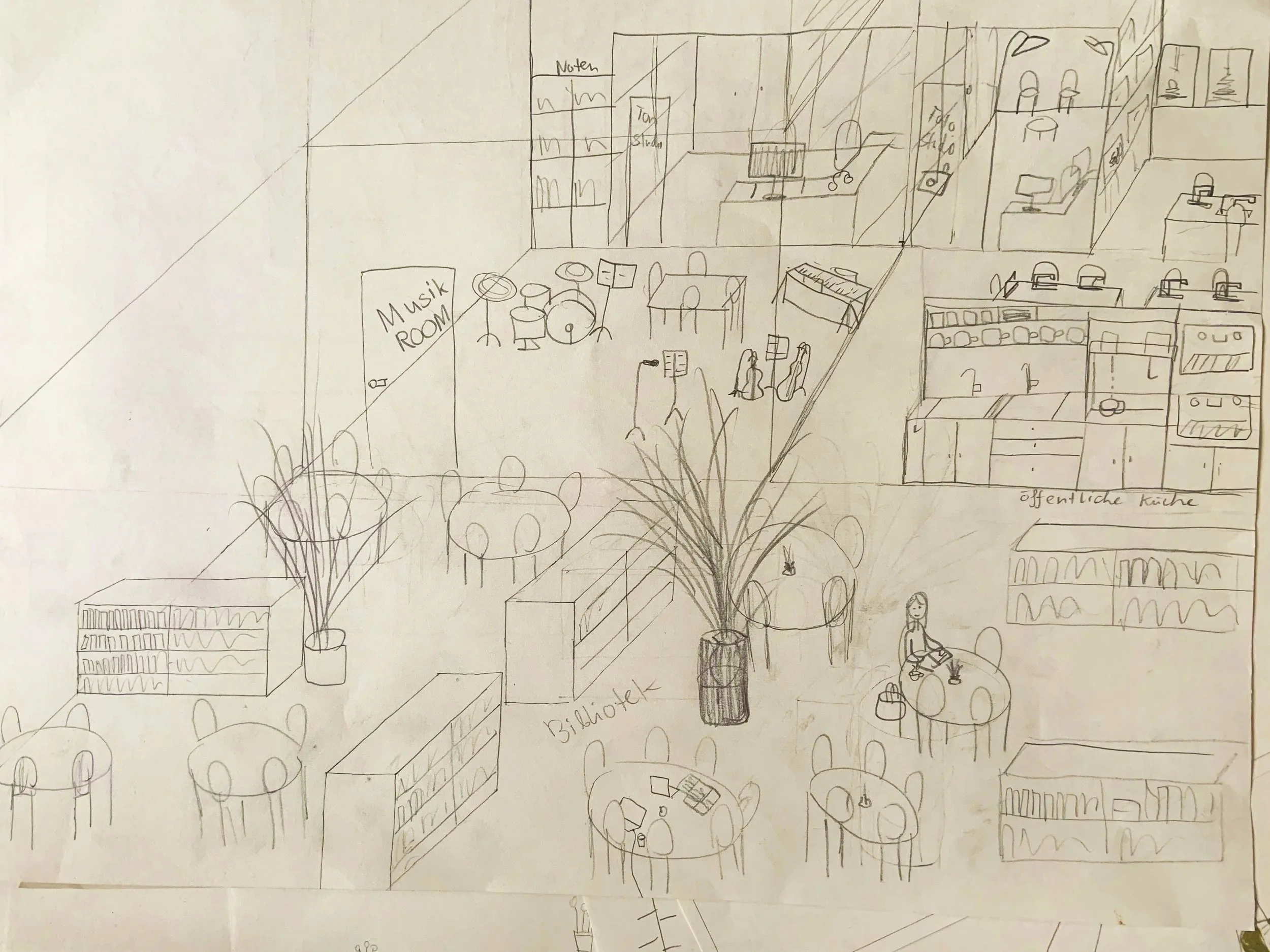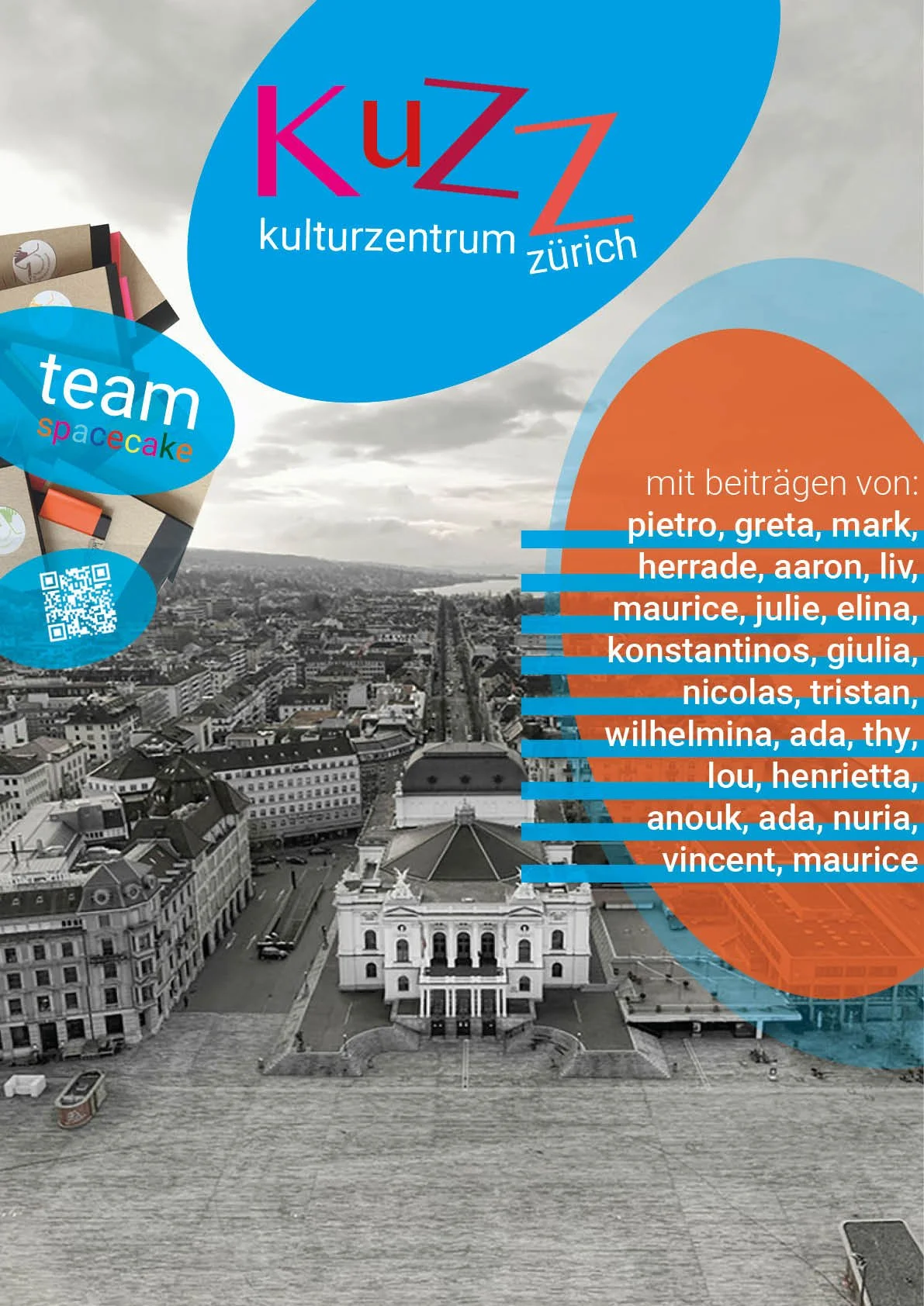das zürcher opernhaus braucht dringend mehr platz! Der nachbarsbau, bei vielen als «Fleischkäse» bekannt, soll in rund 10 jahren einem neuen gebäude weichen, das unter anderem auch viel offenen Begegnungsraum für alle bereitstellt. aber noch Bevor der offizielle Architekturwettbewerb 2026 losgeht, schrieb das Opernhaus Zürich einen kinder- und Jugendwettbewerb aus! gesucht wurden Ideen zur Innenraumgestaltung eines neuen öffentlichen Ortes im gebäudeinneren und zur Gestaltung einer Dachterrasse mit blick auf den zürisee für alle. natürlich nahmen auch wir am Wettbewerb teil - als team spacecake!
